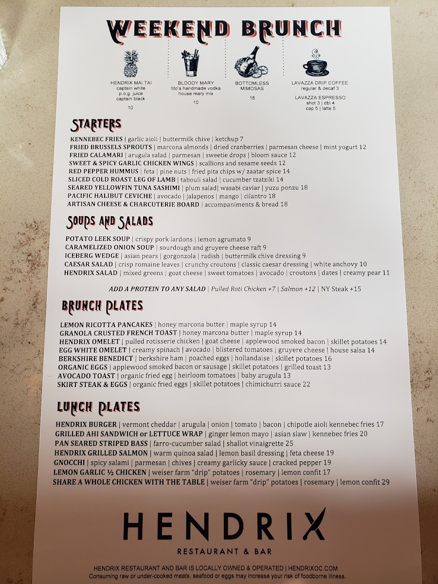 Hendrix Restaurant and Bar Menu